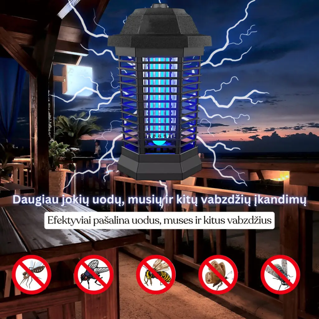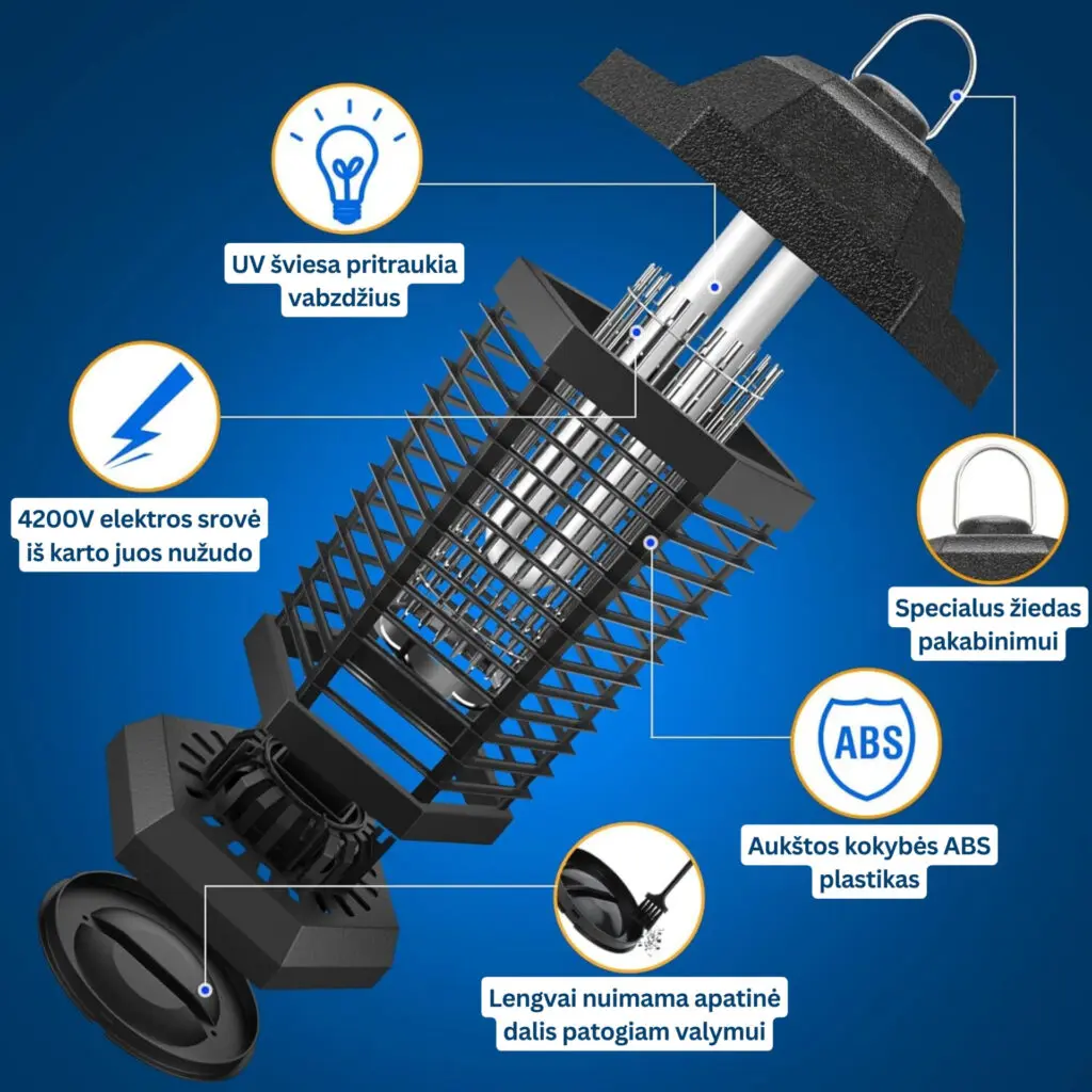 UV šviesos diodas – pritraukia visus skraidančius vabzdžius – rekomenduojama naudoti tamsiu paros metu.
