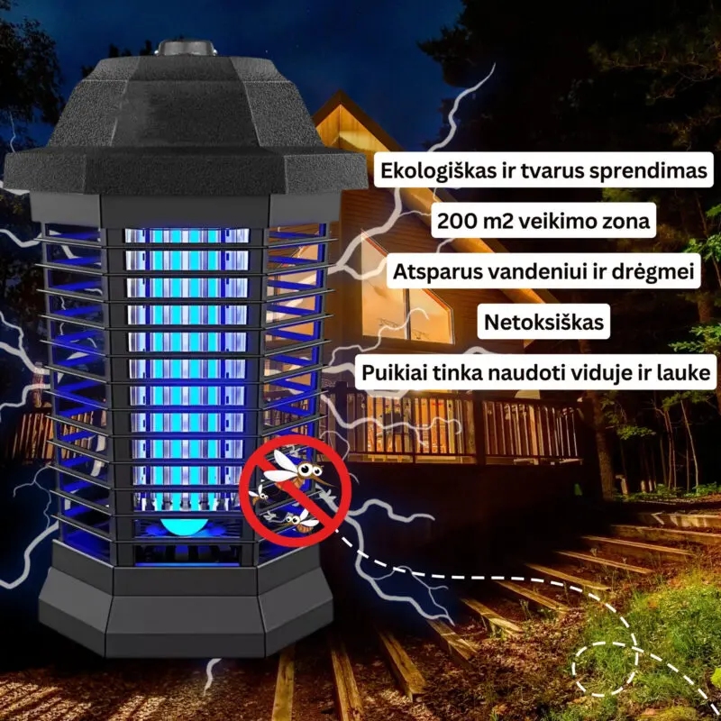 UV šviesos diodas – pritraukia visus skraidančius vabzdžius – rekomenduojama naudoti tamsiu paros metu.