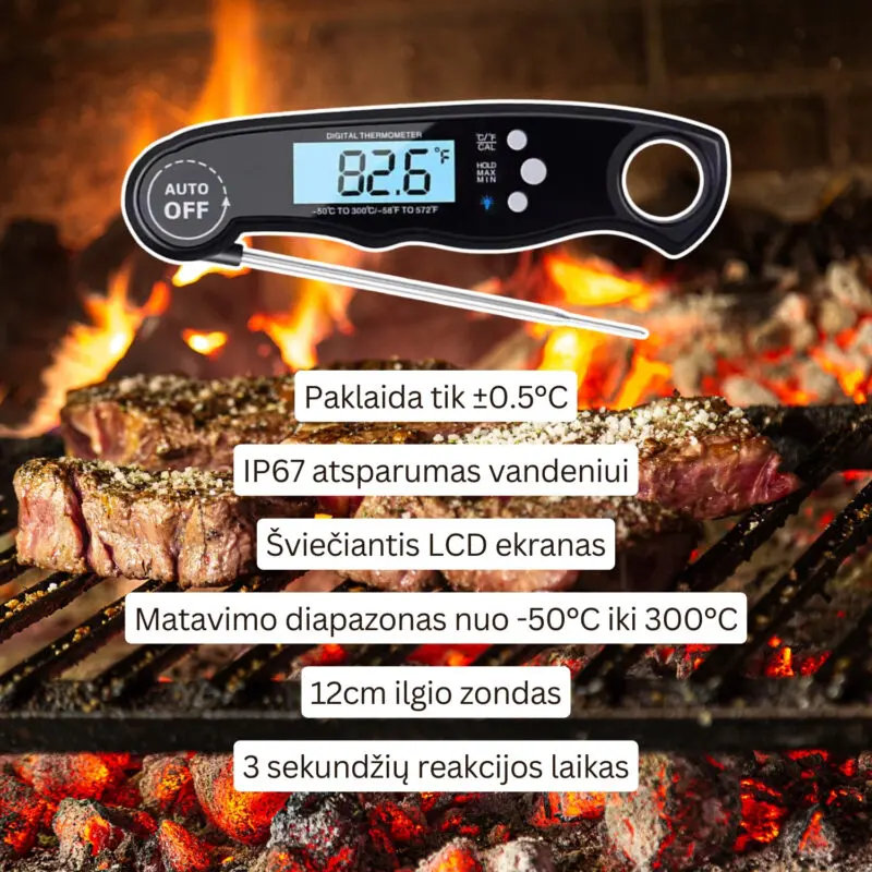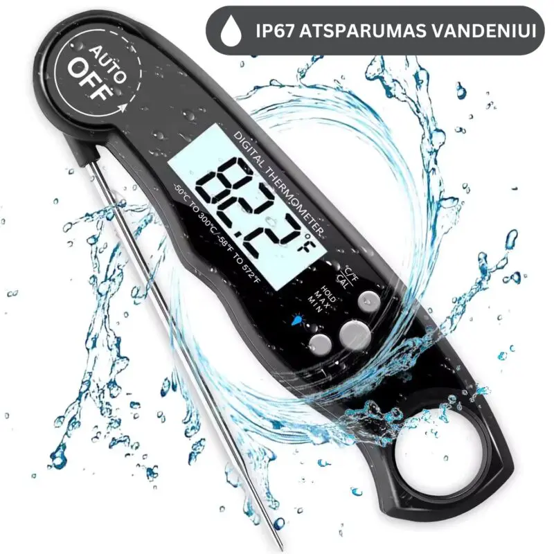 - Atsparus vandeniui IP67! Termometras gali būti plaunamas po vandeniu!